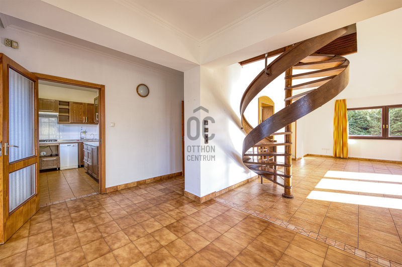 A belső terek rendkívül tudatos kialakítással, otthonos hangulattal rendelkeznek. Az alsó szinten tágas nappali, kényelmes konyha, egy szoba, fürdőszoba, külön wc és közlekedő található. Az emeletre elegáns csigalépcső vezet, ahol három szoba, egy fürdőszoba, külön wc, szauna szoba és tágas közlekedő biztosítja az otthon kényelmét. Már csak egy család hiányzik , hogy újra élettel teljen meg. Nem feltétlenül igényel teljes körű felújítást, de kisebb esztétikai vagy funkcionális beavatkozásokkal (festés, kisebb javítások, modernizálás) az állapota és az értéke tovább javítható, és igazán kellemes otthonná alakítható.