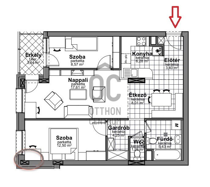- Nappali + 2 hálószoba (nappaliból és az egyik hálóból kijárással az erkélyre)