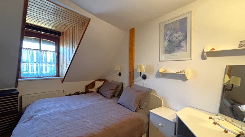 - az emeletre tölgyfa lépcső vezet, itt 3 hálószoba kapott helyet,( 1 szoba közvetlen erkélykapcsolattal ) fürdőszoba, áll a lakók rendelkezésére.