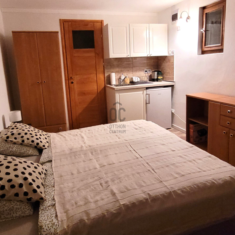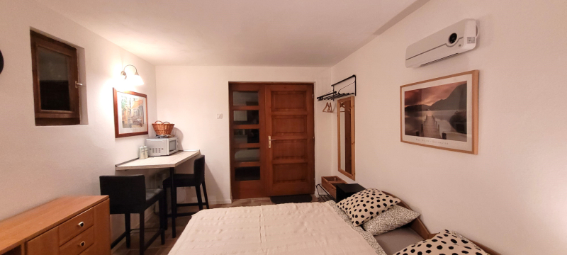 Az önálló bejárattal rendelkező kis lakrész akadálymentesített, itt egy hálószoba,teakonyha, és egy fürdőszoba kapott helyet.