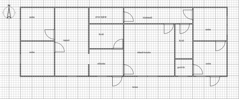 A ház alapterülete 98 nm, ahol négy szoba és két fürdőszoba található, így elegendő teret biztosít a család számára.