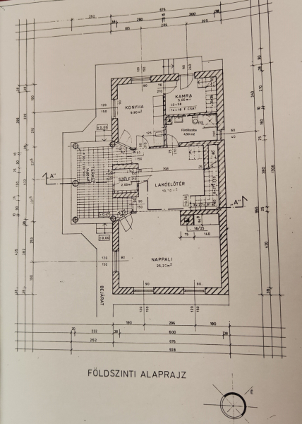 - földszint: terasz, előszoba, étkező, konyha, kamra, fürdőszoba/WC-bidé, nappali, szerszámos, garázs, pince