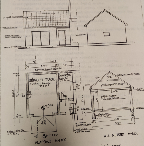 - beton alapra épült téglából, 10 cm szigeteléssel, a tető héjazata cserép