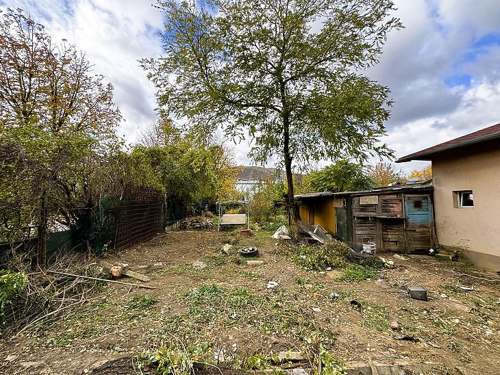 A telken jelenleg két különálló épület és egy dupla beállós garázs található, amely felújítást igényel, de akár bontás után az új építkezéshez is jó alapot nyújthat.