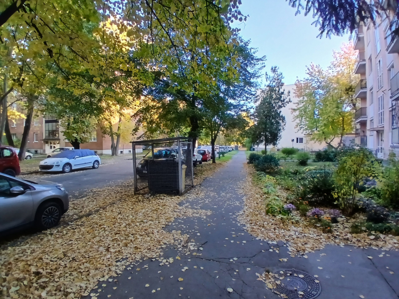 A lakás környezete nyugodt, csendes, madárcsicsergős, parkokkal és fákkal teli zöldövezet, szinte kertvárosias.