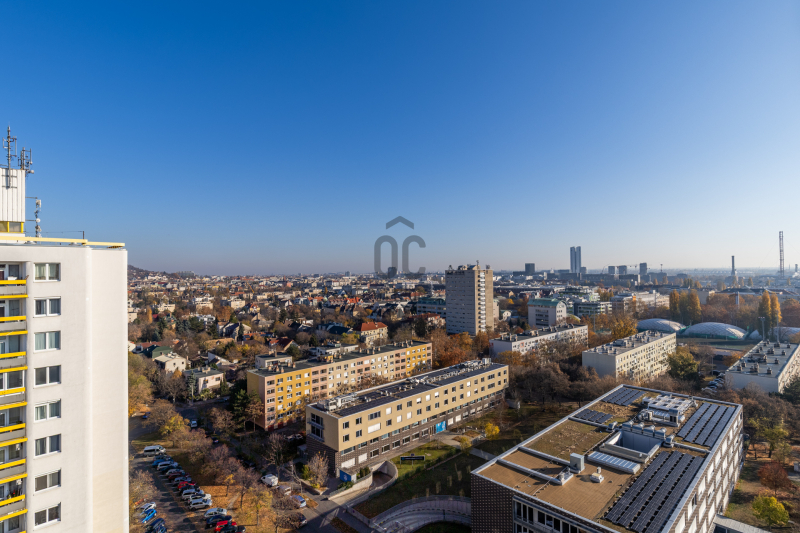 • Panorámás kilátás – a 45 m²-es lakáshoz tartozó 6 m²-es loggia, valamint a nappali és a hálószoba ablakai egyaránt lenyűgöző városi panorámát kínálnak.