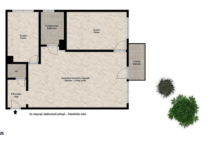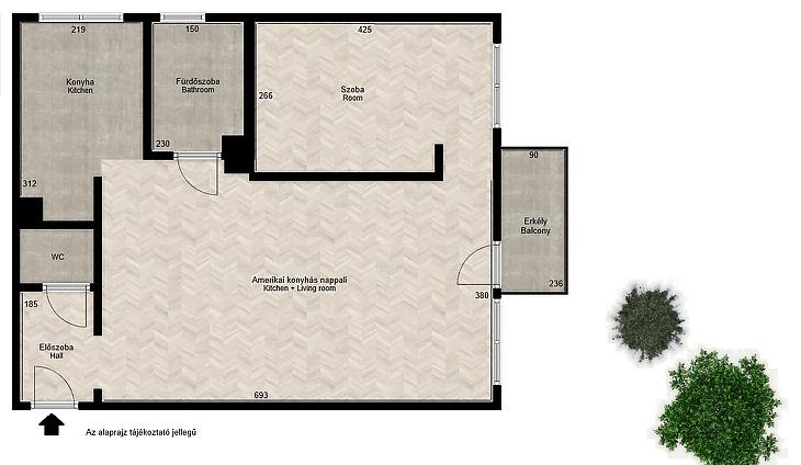 Igény szerint az ingatlan amerikai konyhás nappali + 2 hálószobássá alakítható.