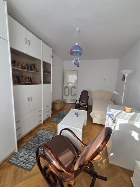 - földszinti rész: 2 hálószoba (15m² és 16m²) , konyha- étkező (25m²) , fürdőszoba (8m²), wc (2m²), közlekedő (10m²), lépcsőház (8m²) , nappali ( 27m²)