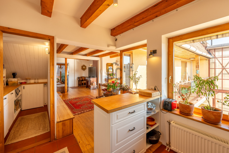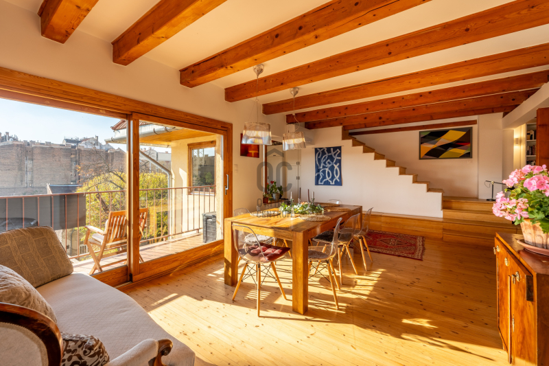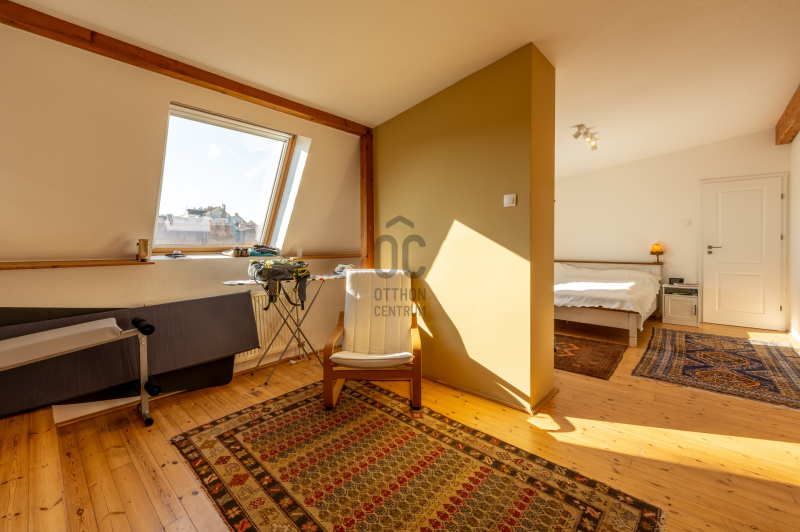 Ez az ingatlan nem egyszerűen egy lakás – egyedi hangulatú, fényben úszó városi otthon, amely Budán ritkán elérhető adottságokkal rendelkezik: