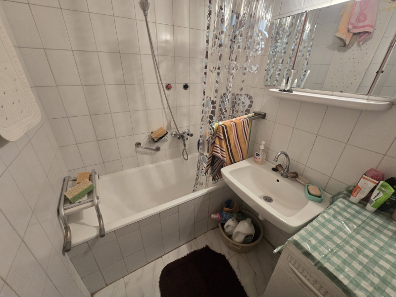 - Közlekedőből nyíló fürdőszoba nagy káddal.