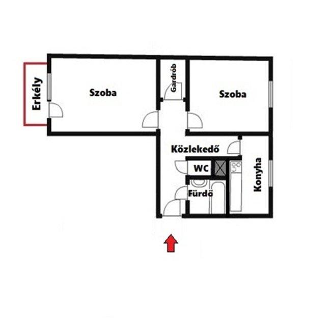 - elrendezése: 2 szoba, gardrób, konyha, közlekedő, WC, fürdő, erkély