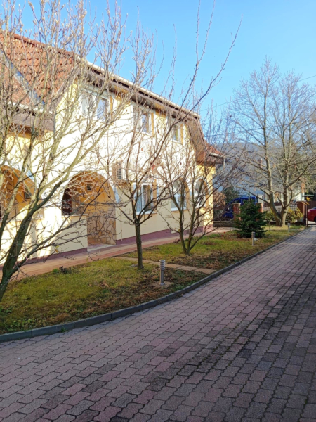 - A teljesen körbekerített telek biztonságos és rendezett, elektromos, szinterezett vaskapuval ellátott bejárattal.