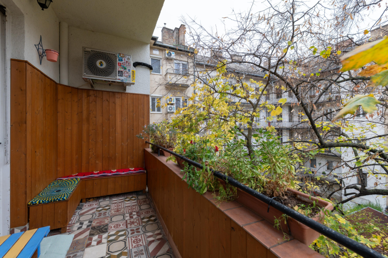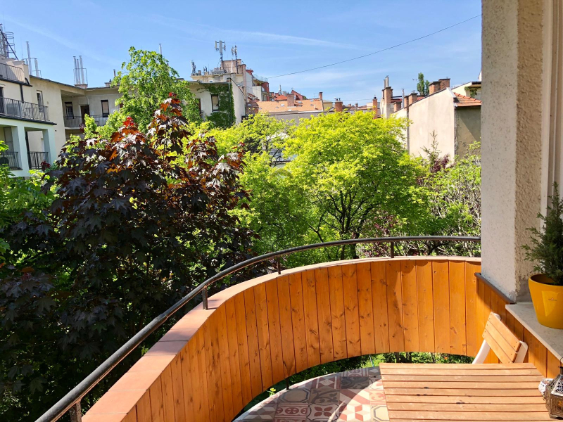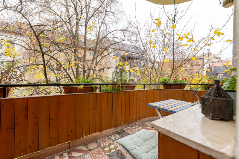Egy 6 nm-es erkély tökéletes helyszín a reggeli kávéhoz vagy a naplemente élvezetéhez a belső zöldkert hangulatában.