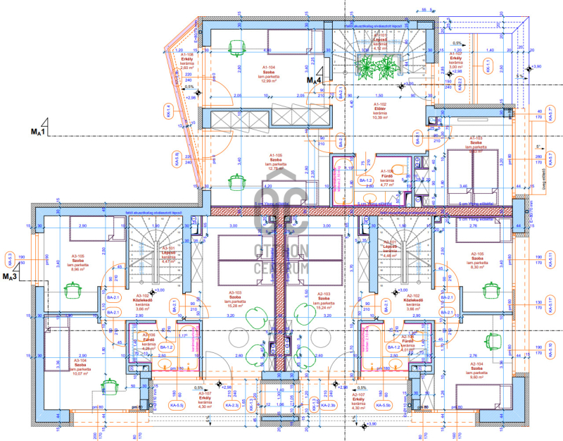 - Modern gépészet: szabályozható hűtés/fűtés (fal- és padlófűtés), automata szellőztetőrendszer