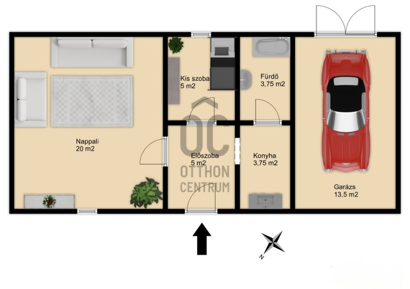 -A házhoz tartozik egy 13,5 m²-es garázs, amely akár tárolásra is alkalmas.