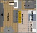 A kis, kompakt lakás jól átgondolt elrendezésű: nappali, hálószoba, konyha, előszoba, valamint fürdőszoba wc-vel található benne. A műanyag nyílászárók redőnnyel felszereltek, így a lakás jól szigetelt és csendes.