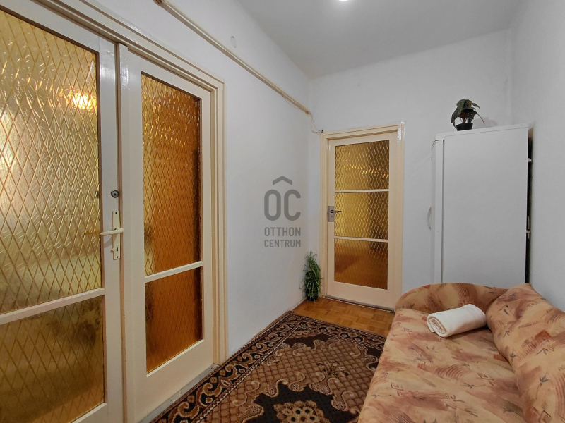 A középső szoba kétszárnyú ajtóval nyílik, előtte étkező, de bontással akár egy nagy tágas térben funkcionálhatok étkezős nappaliként is.