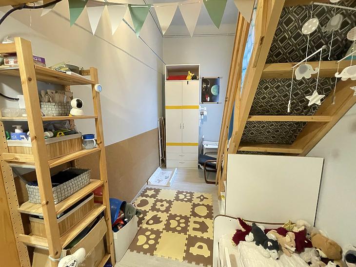 A lakás praktikus elrendezésű: két szoba, egy világos konyha és egy félszoba található benne, így ideális lehet akár családoknak, akár befektetés céljára is. A 3,6 méteres belmagasság tágas érzetet biztosít, a modern kondenzációs kazánnak és a két éve beszerelt klímának köszönhetően pedig egész évben kellemes hőmérsékletet garantál.