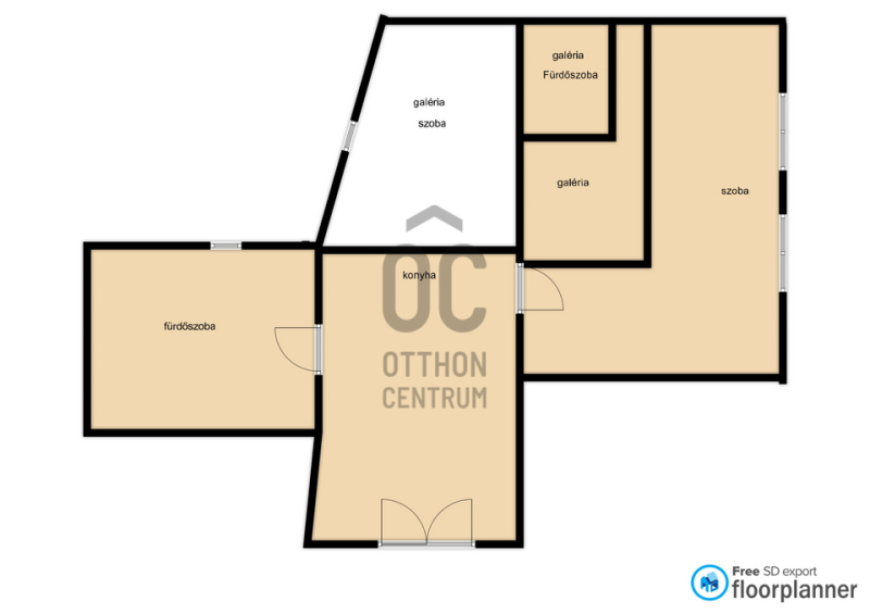 A lakás fő ékessége az egy nagy, napfényes nappali, amely fölött praktikus, két külön szobát magában foglaló galéria került kialakításra.