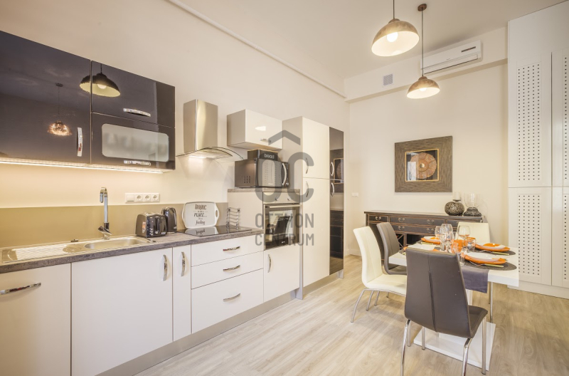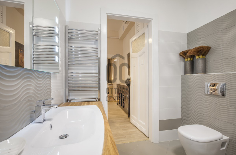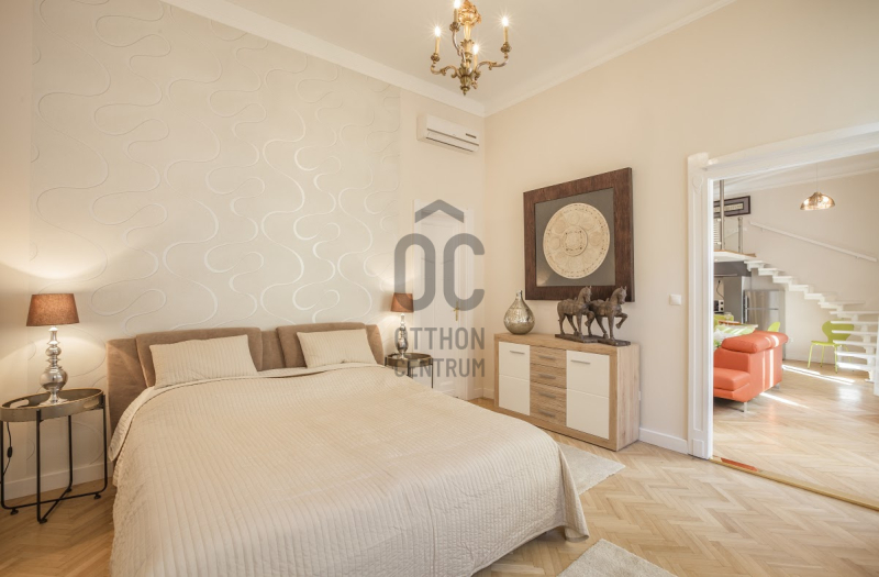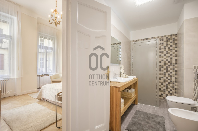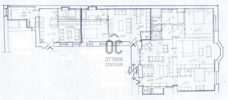 - 234 nm, 3,8 m belmagasságú, felújított, gáz-cirkó fűtésű, inverteres klímás 8 szobás, 3 fürdőszobás+WC-s, 2 önálló WC+kézmosós, teraszos lakás.