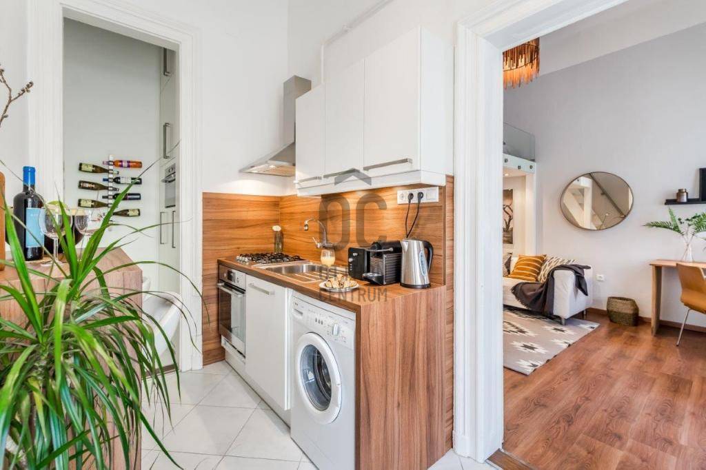 A lakás a praktikus, átgondolt kialakítás mellett a kiemelkedő lokáció miatt is keresett: néhány perc sétára található az Oktogon, az 1-es metró és a 4/6-os villamos.