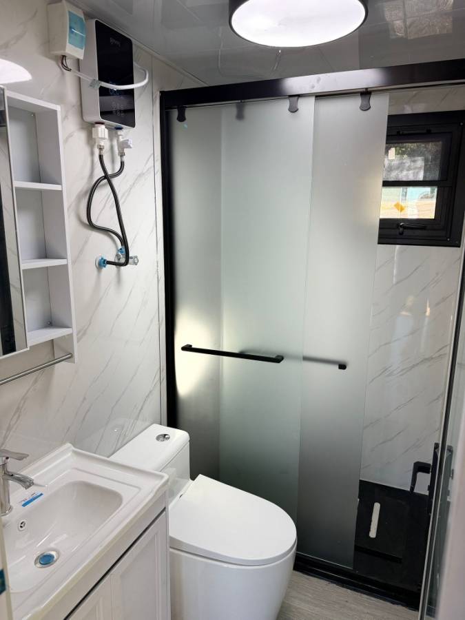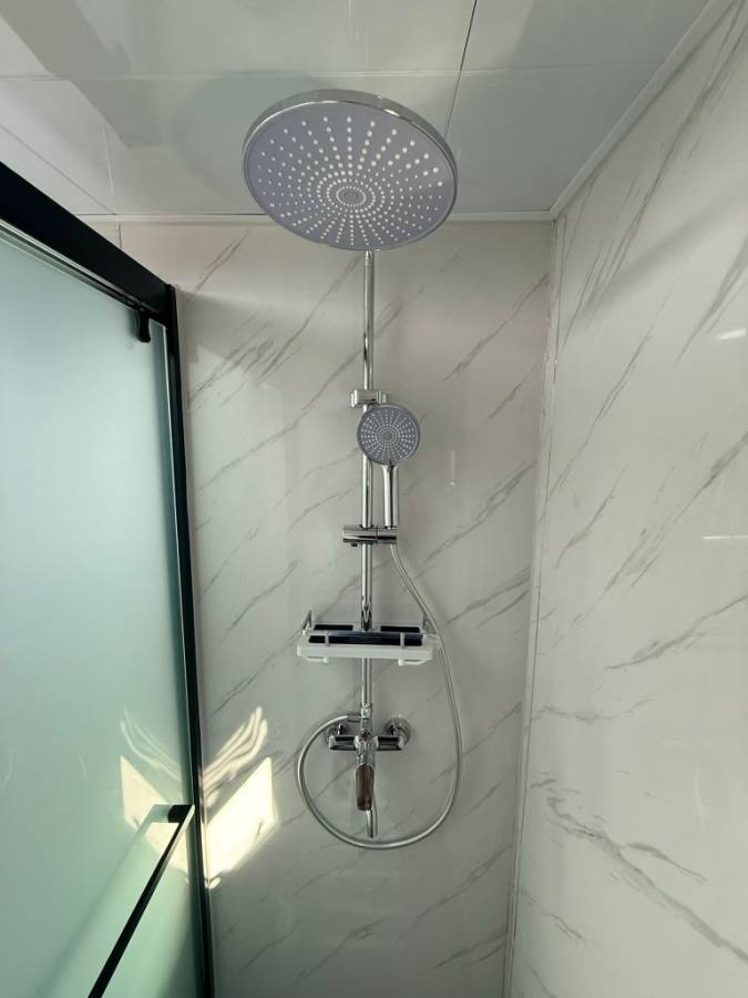 - beépített fürdő – zuhanyzó, kézmosó, toalett – átfolyós vízmelegítővel