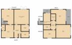 Az emeleten pedig 3 külön álló szoba, valamint fürdő és kamra (padlásfeljáró). Az emeleten egy hűtő-fűtő klíma is van. Valamint egy kis padlásszoba, játszósarok, pihenő. Az emeleten két terasz kapott helyet. A szobákban mindenhol parketta van. A többi helyiség hideg burkolattal fedett.