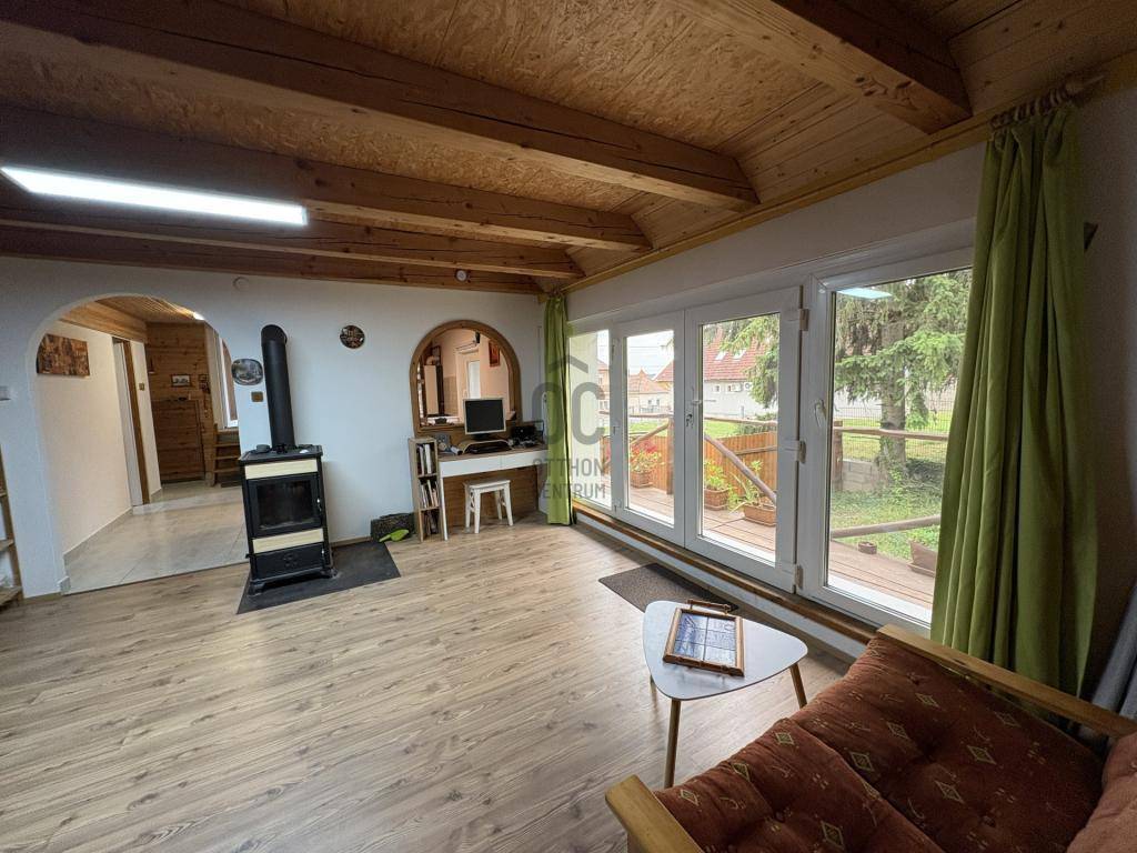 A ház fűtése egyéni gázzal történik, és plusz meleget szolgáltató FATÜZELÉSŰ KANDALLÓ-val rendelkezik. Az első szinten tágas nappali található, mely galériás hálószobával rendelkezik, valamint egy 20 m2-es hálószoba, mely teljesen új 3 elemes gardrób rendszerrel lett felszerelve. A lakórész további helyiségei között szerepel a konyha, étkező, fürdőszoba és külön WC.