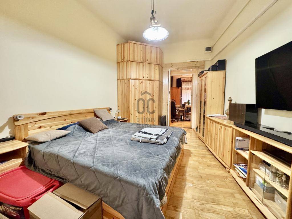 A fa nyílászárók eredetiek, szépen megőrzött állapotban. Ezek adják az egész lakás karakterét: meleg tónus, természetesség, valódi anyagok.