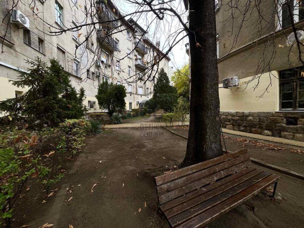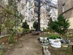 A ház belső udvara igazi kis kert: padok, növények, csend, nagy fák – olyan közeg, ahol jó megállni két lélegzetvétel között. Ez az a budapesti miliő, ami lassan eltűnik, és egyre nagyobb érték.