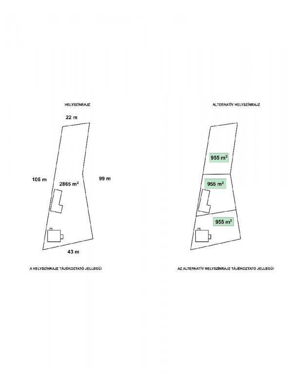 - Akár 3 különálló telekrészre osztható ( 955 m2 / telek)