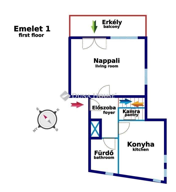 A lakás a második emeleten található (lift nincs), de közvetlenül a garázson keresztül is megközelíthető.