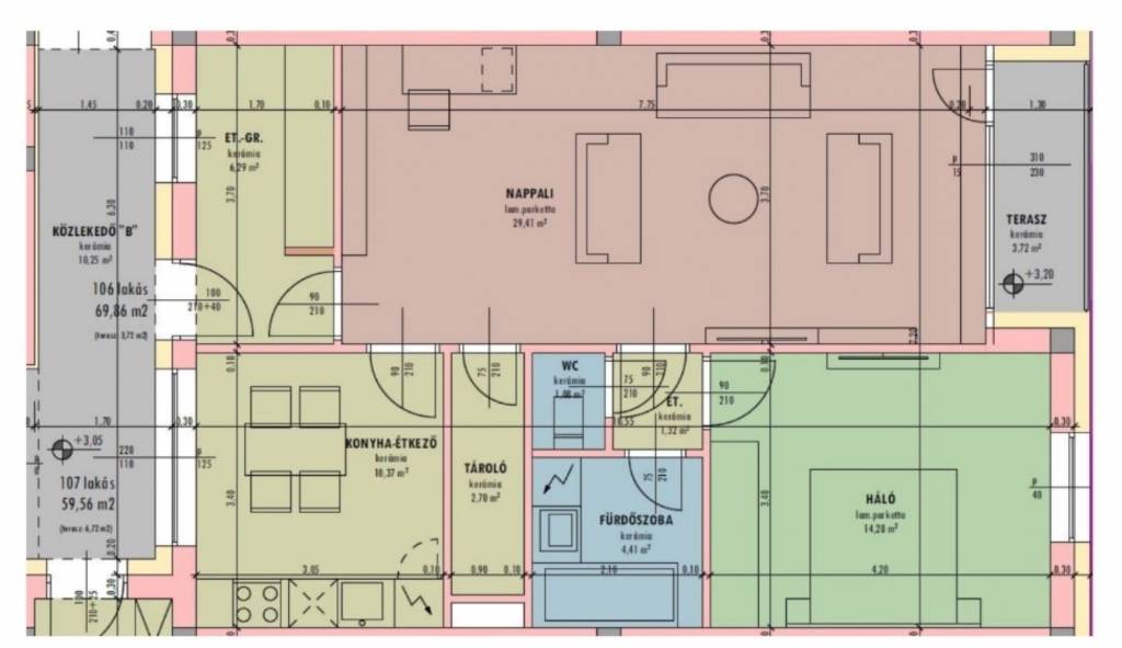 106-es lakásunk szabad a I. emeleten 69,86 m2 +3,72 m2 terasz