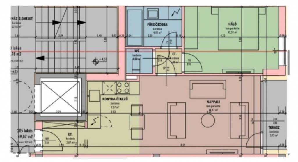 205 -ös lakásunk szabad a II emeleten 49,07 m2 + 3,72m2 terasz (nappali + 1