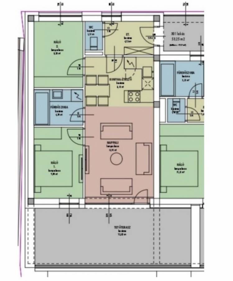 301 -es lakásunk szabad a III emeleten 53,25 m2 + 23,85m2 terasz (nappali + 2