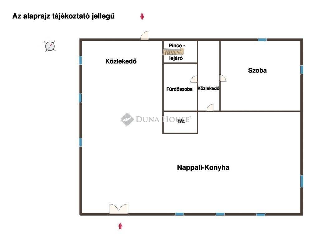 Az ingatlan elrendezése: amerikai konyhás nappali, egy szoba, fürdőszoba és külön WC.
