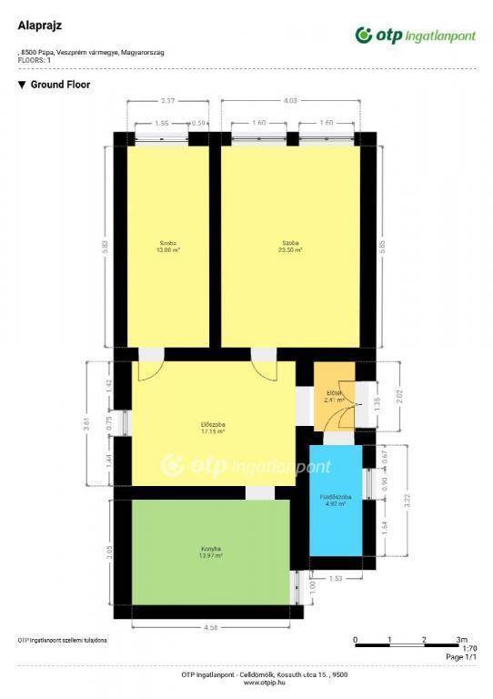 Veszprém vármegyében, Pápa belvárosának szívében kínálok eladásra egy tégla falazatú, 75,7 m2 alapterületű, 2 szobás, konyha étkezős, felújított házat. Az ingatlan 3 lakásos gondozott, rendezett udvarban helyezkedik el, udvar is tartozik hozzá. A jó elrendezésű, világos, ingatlan elosztása szempontjából konyha étkezőből, 2 szobából, egy fürdőszobából és WC-ből áll, ahol mindent megvan kényelmes lakhatáshoz. A szobák parketta burkolatúak, a többi helyiség járólap burkolatú. Az ingatlan melegéről gáz konvektorok és hűtő-fűtő klima gondoskodik, így könnyedén szabályozható a hőmérséklet. A melegvíz ellátást villanybojler szolgáltatja. A ház a közelmúltban többször felújításon esett át, amely során hideg-meleg burkolatok, nyílászárók, konyhabútor cseréje, fürdőszoba felújítása megtörtént. A lakás egy csendes és békés, kulturált helyen található. Ajánlom mindenkinek, aki a belváros központjához közel, mégis csendes környezetben szeretne élni, egy kellemes és praktikus ingatlanban, amely közelében található és könnyen elérhető bármi a városközpontban: az összes városi kényelmi szolgáltatás és az üzletek. Amennyiben az ingatlan felkeltette érdeklődését, keressen bizalommal. OTP Ingatlanpont teljes körű ügyintézéssel áll az eladók és a vevők rendelkezésére. A kínálatunkból választott ingatlan finanszírozásához kedvezményes hitelkonstrukciót kínálunk. Az ingatlan megfelel a fix 3%-os Otthon Start Hitelprogram feltételeinek! Az adásvételi szerződés megkötéséhez igény szerint megbízható ügyvédi közreműködést biztosítunk, és segítséget nyújtunk az adásvételhez kapcsolódó ügyek intézéséhez is. Az ingatlanról készült alaprajz, illetve fényképfelvételek az Otp ingatlanpont szellemi tulajdonát képezik. Ne hagyja ki ezt a kiváló befektetési lehetőséget, amennyiben felkeltette érdeklődését az általam kínált ingatlan, keressen bizalommal!