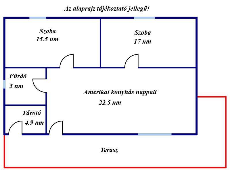 Az ingatlanban kialakításra került 2 szoba, amerikai konyhás nappali, fürdőszoba és egy kamra, melyek otthonos életteret biztosítanak.