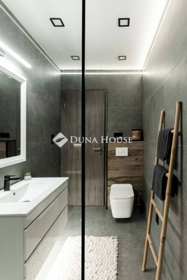 A kétszintes ingatlan nettó 107 négyzetméter alapterületű. Elosztását tekintve átgondolt; világos terek jellemzik: a tágas, galériás amerikai konyha - nappali - étkezővel biztosítja a társasági élet központját, valamint a mindkét szinten megtalálható 2-2 hálószoba és 1-1 fürdőszoba wc-vel lehetővé teszik a praktikus és kényelmes életvitelt.