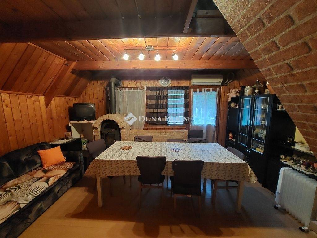 Eladó hangulatos négy évszakos hétvégi ház Paks-Cseresznyéspusztán saját kis erdei menedék!2000-ben épült cseh poniklec faház, folyamatosan karbantartott, 28 m²-es fa szerkezetű házikó, beépített tetőtérrel. Az alsó szinten tágas nappali-konyha és fürdőszoba, fent pedig két meghitt hálófülke várja új tulajdonosát. A hangulatot a kandalló teszi teljessé, ami hűvösebb napokon is barátságos meleget biztosít, emellett az ingatlan klímával is felszerelt. Az épület alatt téglázott pince található, itt került elhelyezésre a házivízmű is.A ház egy 1721 m²-es, tágas telken áll, mely ideális kertészkedéshez, pihenéshez vagy akár kisebb gazdálkodáshoz. Körbeveszi a csend, a friss levegő és a természet, mégis könnyen megközelíthető Pakstól pár percre.Kiknek ajánljuk?- Városi családoknak, akik hétvégén szeretnének elvonulni a nyugalomba- Természetkedvelő pároknak, akik saját kertben, madárcsicsergés mellett pihennének- Azoknak, akik hobbi- vagy alkotóműhelyt keresnek egy inspiráló környezetbenNe hagyja ki, ha egy meghitt, karbantartott, azonnal használható hétvégi házat keres nagy telekkel és igazi vidéki hangulattal!