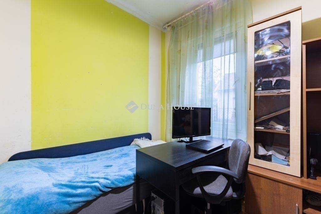 Az ingatlan csendes, átmenő forgalommentes, aszfaltozott utcában helyezkedik el, egyedi kialakításának köszönhetően egyszerre kínál egy családi otthont és külön álló tereket. A fő épület szigetelt és átlagos állapotú, ami egy kis törődéssel hibátlan otthon lehet. A hátsó udvarra nyíló amerikai konyhás nappali biztosítja a csendet és a nyugalmat a három hálószoba pedig az intim szférát a család minden tagja számára. A ház nappalija, konyhája és vizes helyiségei kerámiával burkoltak, szobái parkettával. A fő épület fűtését cirkófűtés biztosítja, hő leadói lemez radiátorok.
