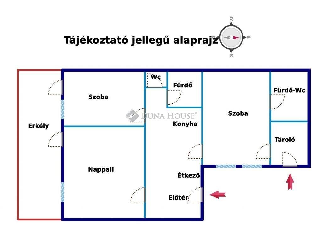 Kialakításra került 2 hálószoba, egy nappali, két fürdőszoba, külön wc, konyha-étkezővel, valamint tároló helyiség.