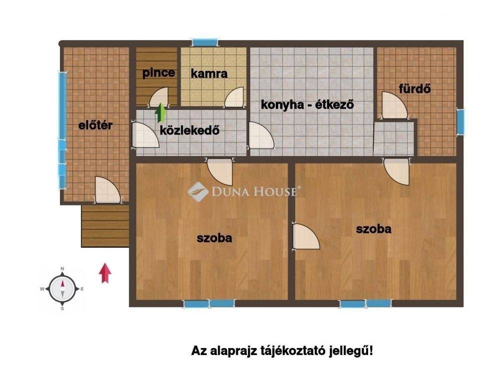 Lakóterének felosztása: 2 szoba, konyha, kamra, fürdő, előszoba.