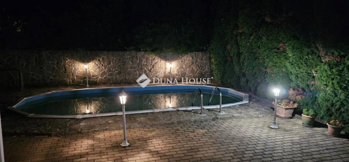 Győrújbarát csendes, kedvelt részén eladó egy 117 m² hasznos alapterületű, könnyűszerkezetes, szigetelt, 2001-ben épült családi ház, hatalmas 1490 m²-es telekkel, garázzsal, terasszal és medencével.