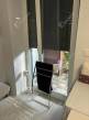 A fürdőszoba zuhanyzós, WC-vel, és a benne található bútorzat prémium kategóriás, modern és időtálló kivitelben készült.