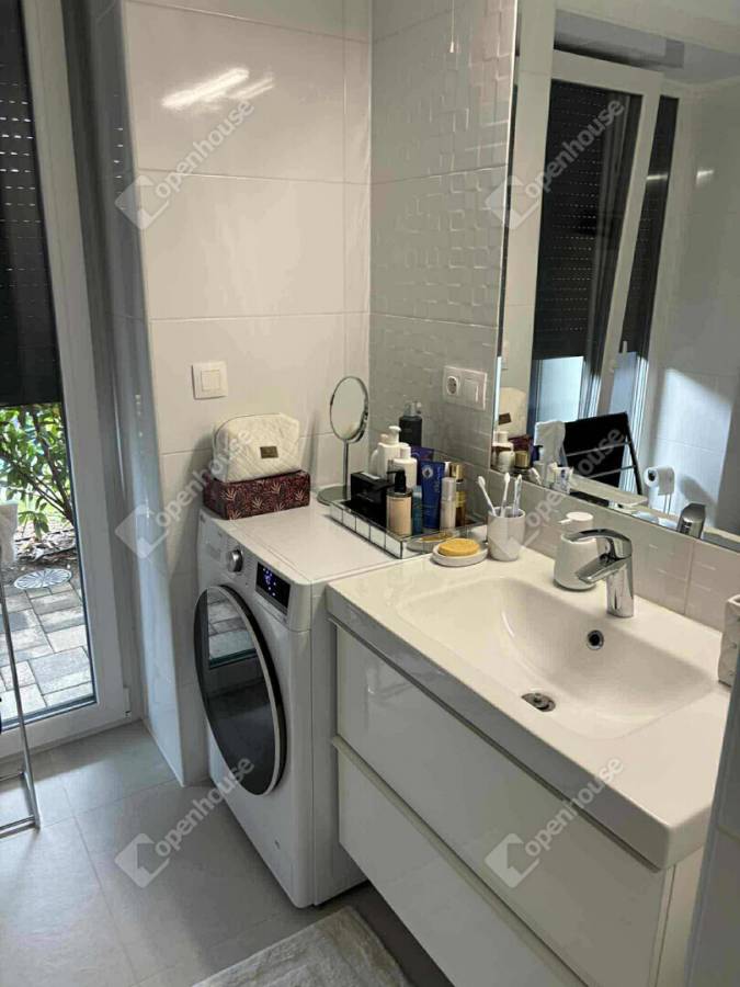 Különlegessége, hogy a fürdőszobából is közvetlen kijárat nyílik a saját kertbe, ami a luxusingatlanok egyik ritka és rendkívül kényelmes megoldása.