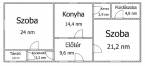 Található benne két nagyméretű szoba, előtér, közlekedő, tároló, kamra, fürdőszoba és egy tágas konyha.