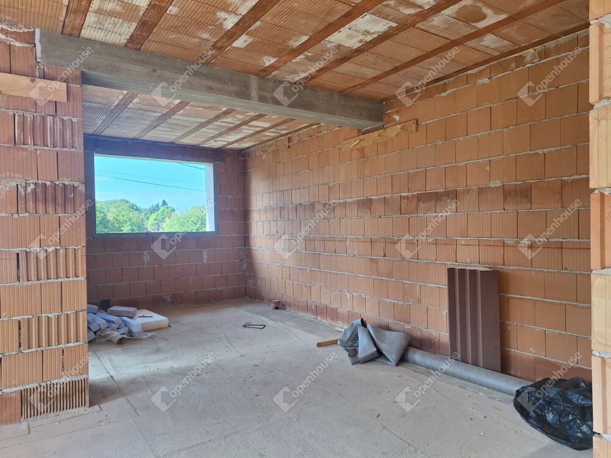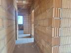 A teraszról egy impozáns lépcső vezet az emeletre, ahol 1-2 hálószoba, fürdő, WC, háztartási helyiség, valamint egy tágas közösségi tér alakítható ki. A kivitelezés során elkészül a belső vakolás, estrich beton, a tetőszerkezet hőszigetelése és lambériázása.