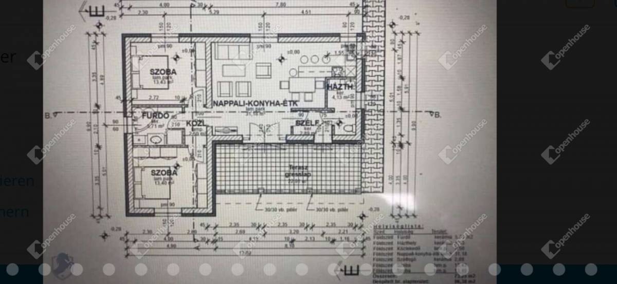 A 96,38 négyzetméter beépített alapterületű otthon belső tere 73,25 négyzetmétert tesz ki, és minden részletében átgondolt. A 31,18 négyzetméteres amerikai konyhás nappali és étkező a ház szíve, ahol a család és a barátok kényelmesen együtt tölthetik az időt. Két tágas, világos szoba (13,43 és 13,40 négyzetméter) biztosítja a nyugodt pihenést, míg a 5,71 négyzetméteres zuhanyzós fürdőszoba modern és ízléses kialakítású. A 2,89 négyzetméteres szélfogó, a 2,50 négyzetméteres közlekedő, valamint a 4,13 négyzetméteres háztartási helyiség mind praktikus és funkcionális megoldásokat kínálnak a mindennapokra.