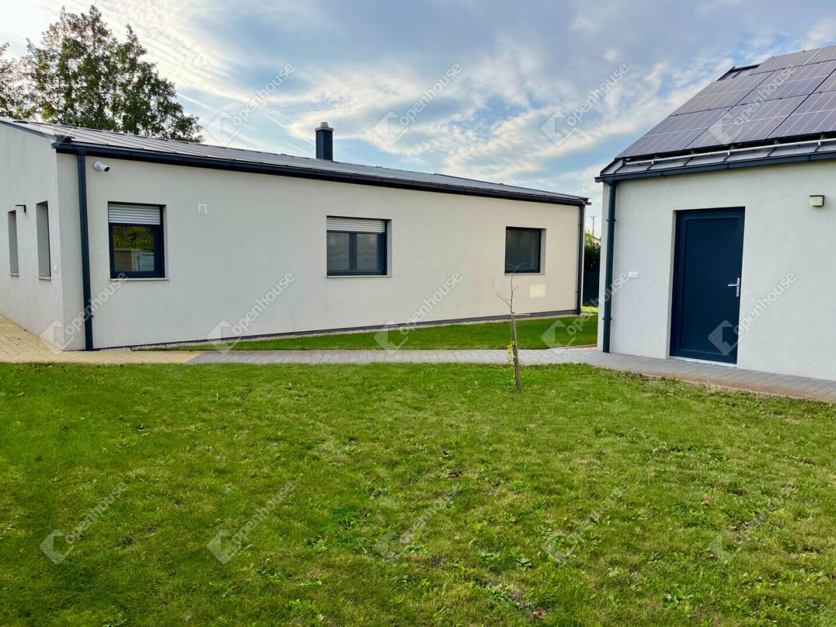 A házhoz egy kétállásos garázs is tartozik, amely biztosítja az autók kényelmes és biztonságos elhelyezését. A műanyag keretes, hővédő üvegezésű nyílászárók kiváló hő- és hangszigetelést garantálnak, így a ház télen is kellemesen meleg, nyáron pedig hűvös marad. Az ingatlanban villany, víz és csatorna is rendelkezésre áll, gázra nincs szükség, hiszen a ház korszerű és energiatakarékos.